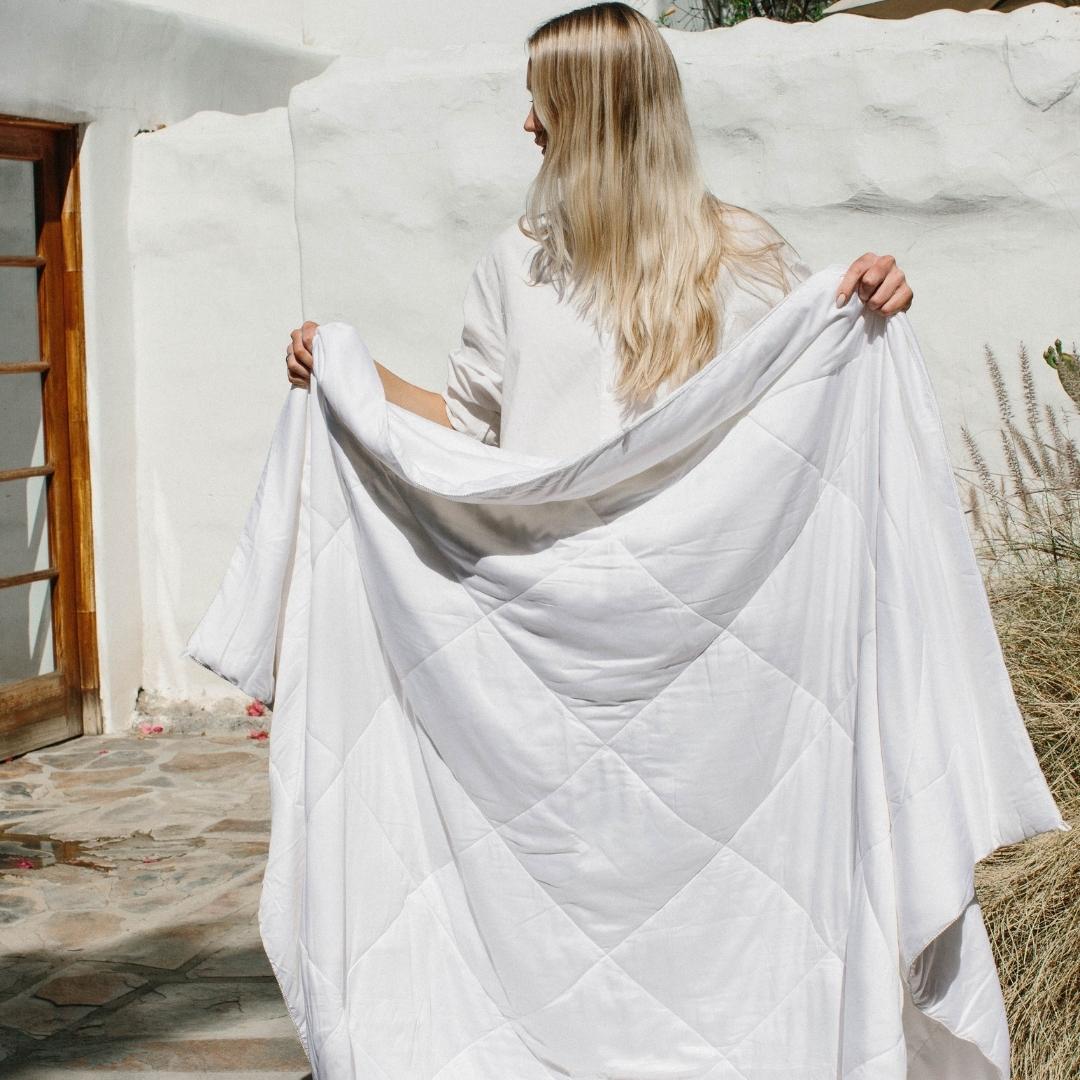 Contrary to popular belief, hot sleepers can sleep with a comforter, so long as it’s made with the right materials.